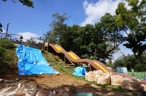 滑り台の始点から見た、沖縄セルラースタジアムです。